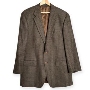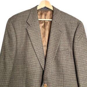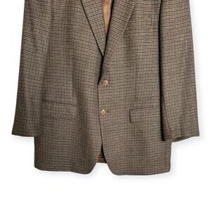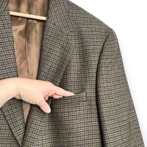 Vintage Chaps 100% Wool Brown Houndstooth Two Button Grandpa Blazer Men's 44R