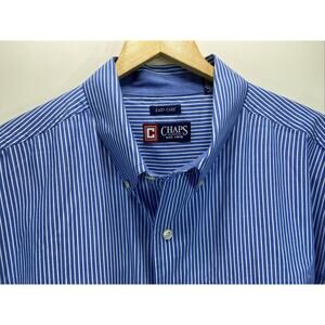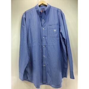 Vintage Chaps Blue White Striped Long Sleeve Button Shirt Size 2XL XXL 50-52