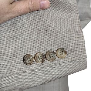This stylish suit features a four-button jacket with a notch lapel and single-breasted front, a flat front pants with a straight leg, and inner pockets for added convenience. The crosshatch pattern and beige color give it a timeless and sophisticated look, ideal for the summer, fall, or spring seasons.