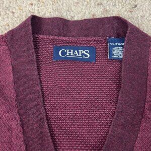 Vintage Chaps Deep Red V-neck Cardigan Sweater Preppy Academia Size XXL Men's