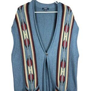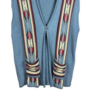 Vintage Chaps Denim Vest Women’s 2X Southwest Aztec Knit Boho Western Layering