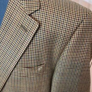 Vintage Chaps Ralph Lauren 100% Silk Tan/Brown Houndstooth Jacket 42R