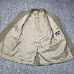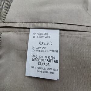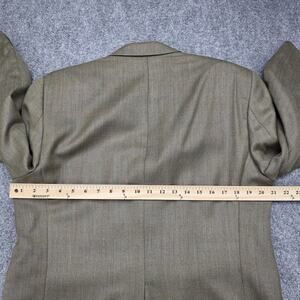 Construction and details: Single-breasted 3-button front, notched lapels, fully lined interior, single back vent, two front flap pockets, one chest welt pocket, multiple interior pockets, four-button cuffs, classic business or dress wear style.