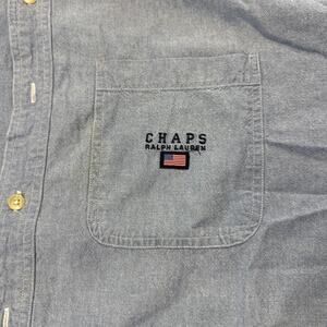 Vintage Chaps Ralph Lauren Chambray Shirt Size Large Blue Denim Light 90s Cotton
