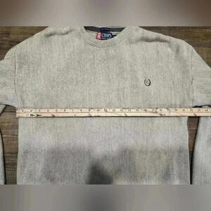 This vintage Chaps Ralph Lauren sweater is a must-have for any fashion-savvy man. With a classic crew neck and pullover closure, it's perfect for travel, casual outings, or even workwear. The tight-knit cotton fabric with an embroidered herringbone pattern and oversized, heavyweight design make it a great choice for winter, fall, or spring.