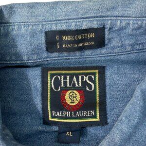 Vintage Chaps Ralph Lauren Medium Wash Blue Jean Denim Button-Up Shirt Size XL