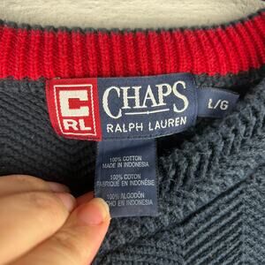 Keywords: vintage Ralph Lauren sweater, Chaps preppy knitwear, classic men's pullover, heavyweight cotton sweater, Ivy League fashion, collegiate prep style, timeless fall layering, structured casual wear, sophisticated men's wardrobe, heritage-inspired knit sweater.