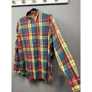 Vintage Chaps Ralph Lauren Shirt Mens Large Plaid Hong Kong Yellow Red Button up