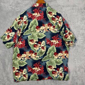 Vintage Chaps Ralph Lauren Shirt Mens XL Blue Green Hawaiian Tropical Floral