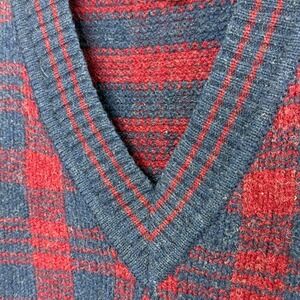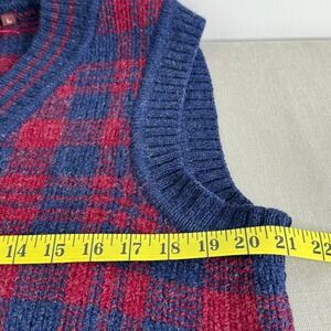 Vintage Chaps Ralph Lauren 100% shetland wool sweater vest. Blue/red plaid, ribbed hem. Two tiny holes on hem - see pictures. Made in Hong Kong