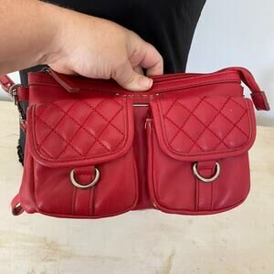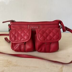 Vintage Chaps Womens Y2K Red Crossbody Purse Bag Quilted Pockets Wristlet Preppy