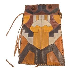 Rare vintage 1960s–70s Char handmade leather patchwork purse, featuring bold geometric folk-art designs in earthy tones. Hand-stitched details, braided strap, and the iconic Char peace dove label make this a true collector’s piece. Ready to add a statement to any boho or vintage wardrobe. Good preowned vintage condition.