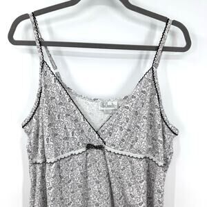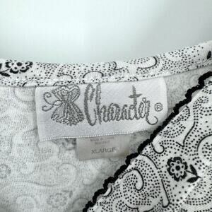 Vintage Character Babydoll Chemise Mini Slip Dress XL Black White Floral Y2K