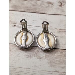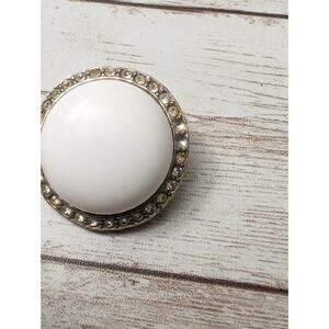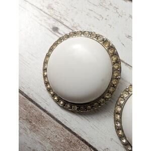 Vintage Charel Clip On Earrings - 1.25" White with Halo - Missing Gems