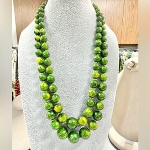 Vintage Charel Marbled Creamed Spinach Butterscotch Double Strand Bakelite N…