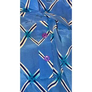 Vintage Charles Bianco 100% Silk Blue Print Collared Shift Dress Size: 10