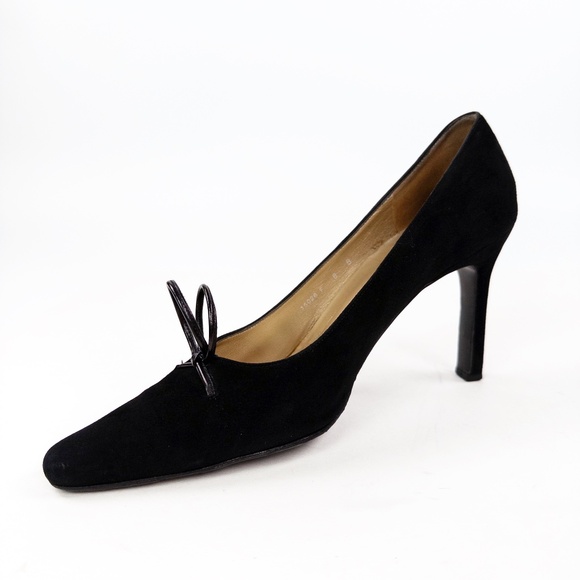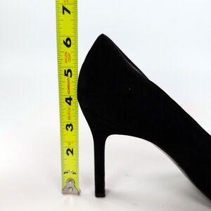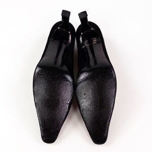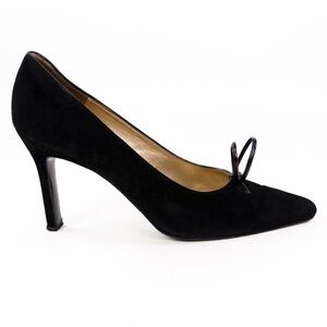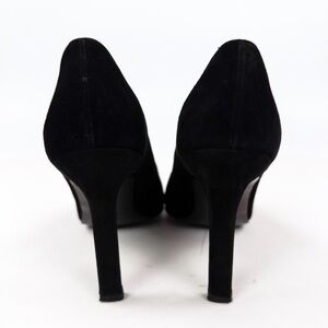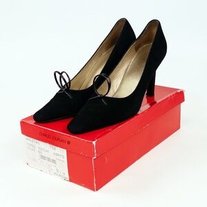 Vintage Charles Jourdan Suede Pump with Sculptural Design. Early 2000's. Collectible. Black Suede. Narrow rectangular heel and Semi-pointed Toe. Ships with box. No dust bag.