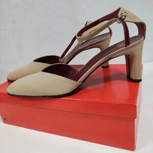 Vintage Charles Jourdan Beige tan taupe ankle strap pumps sz M 10 .