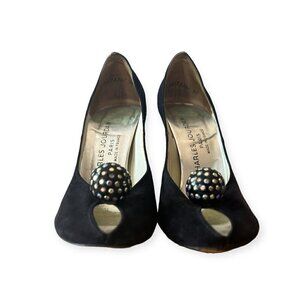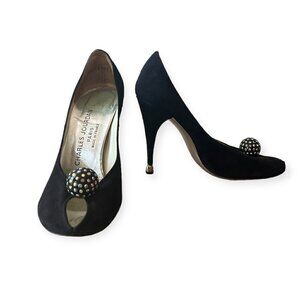 Vintage Charles Jourdan Black Suede Heel with Rhinestone Ball.