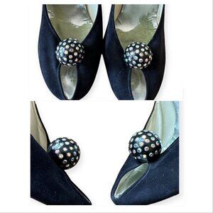 Vintage Charles Jourdan Black Suede Heel with Rhinestone Ball. Size 7 2A