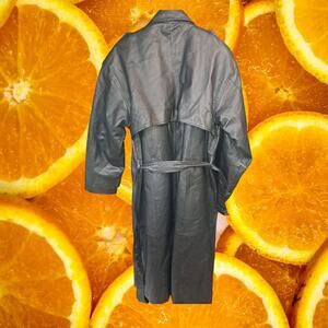 Vintage Charles Klein Black Leather Trench Coat With Belt Size Medium