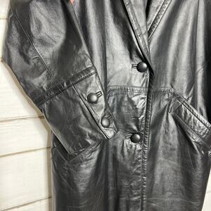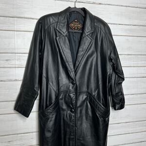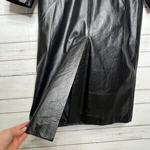 Vintage Charles Klein Black Leather Trench Coat Women’s Medium Long Jacket