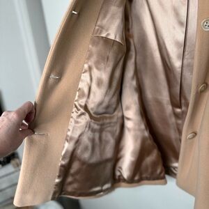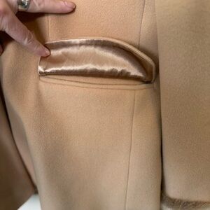 Vintage made in London 20% Cashmere, 65% wool,satin lined,tan, thick Fur collar, thick fur sleeves coat, PENNY LANE , Rock & Roll. This a very luxurious coat made with quality materials and tailored to perfection. I love this coat, it doesn’t fit me anymore.