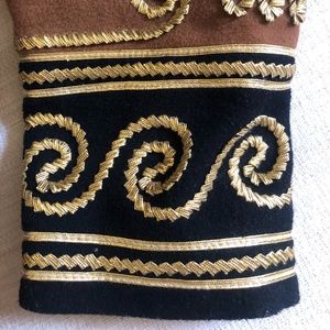 Vintage 1980s Charles Uluech Wool/Cashmere blazer with black sleeve end and gold embroidered piping