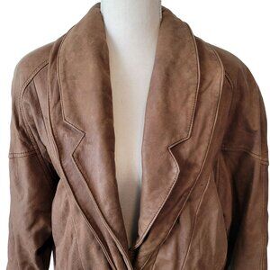 Vintage Charley's Leather Ladies Jacket, Size Small. Distressed leather outer, cotton liner and nylon inner sleeves. Three snap closure, elastic wide waist, two side slit pockets. Made in the 1980's.