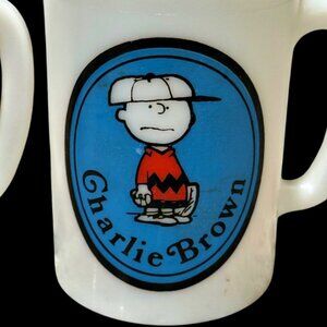 *Vintage Avon Charlie Brown Milk Glass Mugs