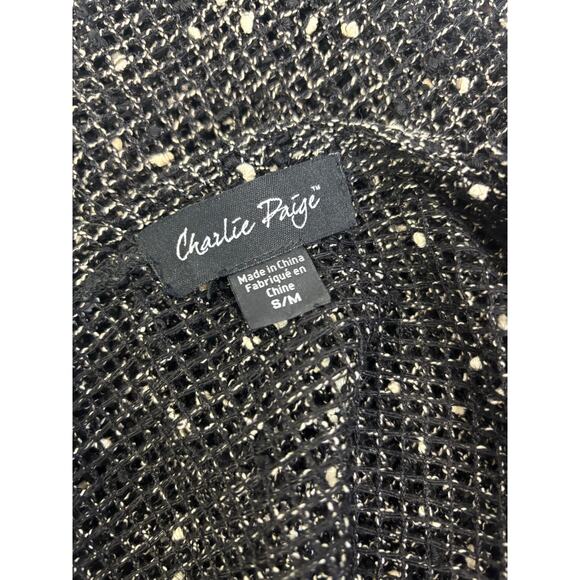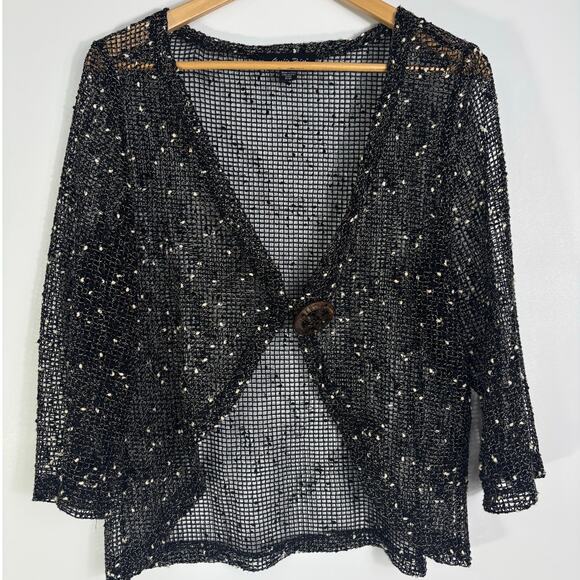 Vintage Charlie Paige Sheer Open Knit Cardigan Black Cream Fleck Big Button S/M