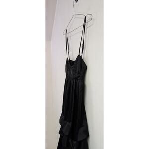 Vintage Charlotte Russe Slip Dress Y2K Bustier Gathered Ruffles Satin Black S