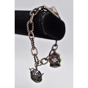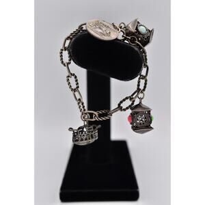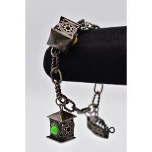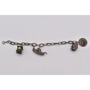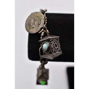 Vintage Charm Bracelet Coin Antiqued Metal Art Deco Chunky Retro 1940s BinAD
