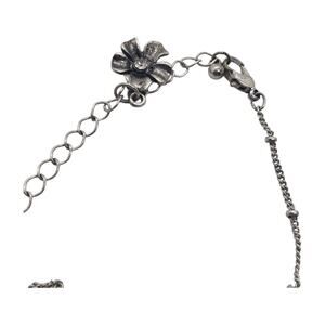 Color/Material: Silver-tone metal with antiqued finish; clear rhinestone/crystal accents