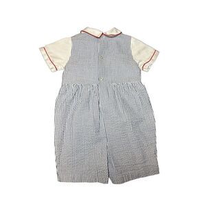 Vintage Charm! Seersucker Car Romper w/ Snaps & Buttons (Approx. 18-24 Months)