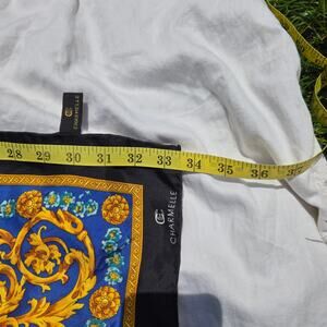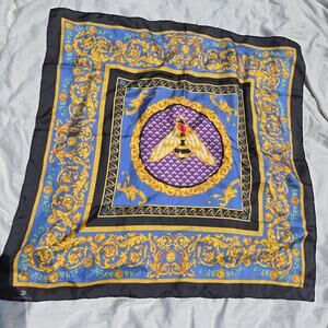 Vintage Charmelle Queen Bee Silk Scarf Rolled Hem Blue Gold Black