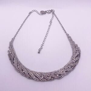 Shine in timeless elegance with this Vintage Charming Charlie Rhinestone Collar Necklace from 2005. Covered in dazzling rhinestones, this silver tone collar necklace is the perfect statement piece for evening wear, weddings, or glamorous everyday style. In excellent vintage condition, it adds a sophisticated sparkle to any outfit.