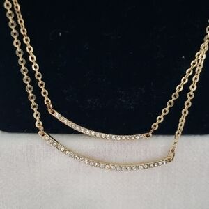 Beautiful Vintage Charming Charlie's Goldtone necklace with two gold tone bars with clear rhinestones. They could be cubic zirconia but I have not been able to verify that.