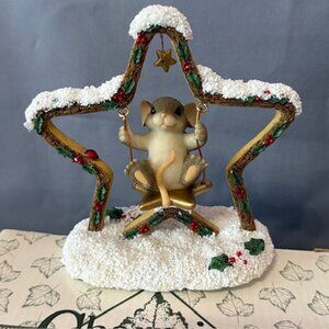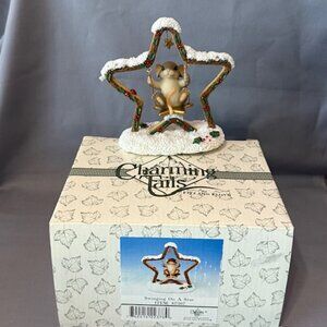 Vintage Charming Tails Figurine Mouse Fitz Floyd Christmas Swinging On Star Mice