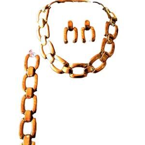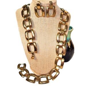 Vintage Charming Trio Chain Necklace Bracelet Post Earrings Set