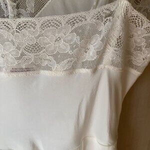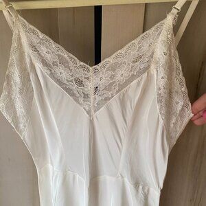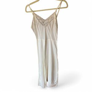 Vintage Charmode White Lace Trim Satin Slip Petticoat Shift Dress XS