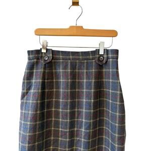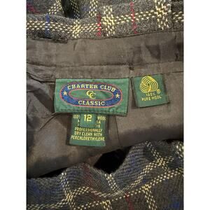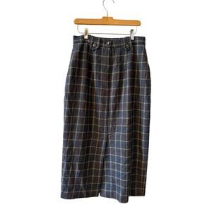 Vintage Charter Club Classic Wool Maxi Pencil Skirt Gray Plaid Print, size 12 but fits more like a modern day M. Good preowned condition 100% wool in a medium gray with Red & Blue Plaid print, button belt loop detail, kick pleat and hidden back zip & button closure, fully lined. Great modest fall work skirt, pair with boots & a blazer for a cute fall outfit!