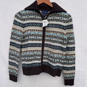 Vintage Charter Club Cotton Fair Isle Zip Up Cardigan Size Small Petite