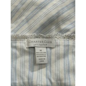 Keywords: Charter Club nightgown, blue striped nightgown, sleeveless nightgown, cotton nightgown, lace trim nightgown, womens nightgown, medium nightgown, vintage nightgown, retro nightgown, comfort nightgown, sleepwear, loungewear, night dress