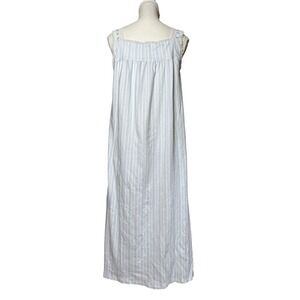 Vintage Charter Club Nightgown Blue Striped Sleeveless Cotton Lace Trim Coquette