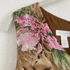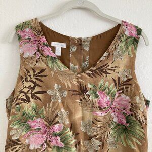 Vintage Charter Club Silk Linen Blend Jungle Floral Sleeveless Tank Button Back