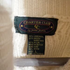 Vintage Charter Club Sweater Large Lambswool Cableknit Turtleneck Angora Ivory