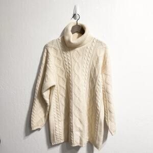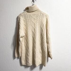 Charter Club Sweater Large Lambswool Cableknit Turtleneck Tunic Angora Ivory