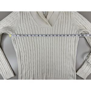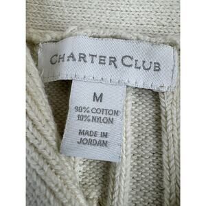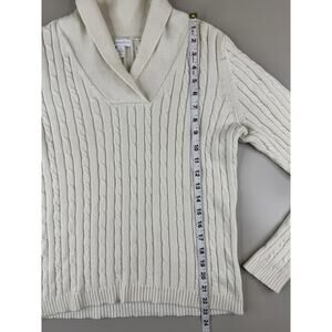 Vintage Charter Club Womens Cable Knit Shawl Collar Sweater M Cream Old Money