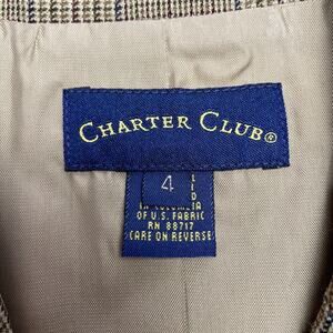 Vintage Charter Club Wool Blend Blazer Jacket Womens 4 Tan Glen Plaid Equestrian